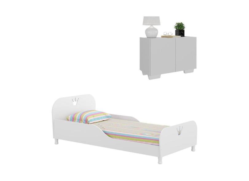 Cama Infantil P Colchão 70 X 150 Cm E Mesa De Cabeceira 2 Portas Multimóveis Mp4171 Branca Branco