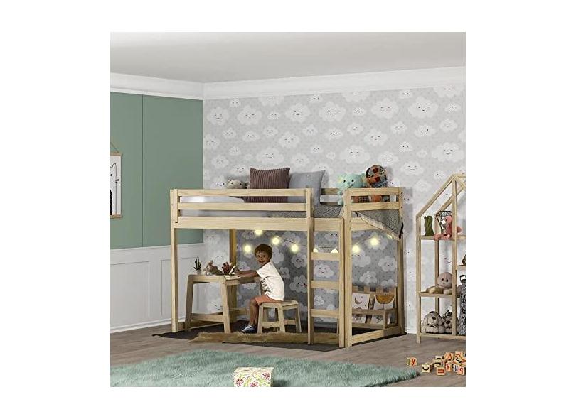 Cama Infantil Prime Alta II Natural em Madeira Maciça Casatema