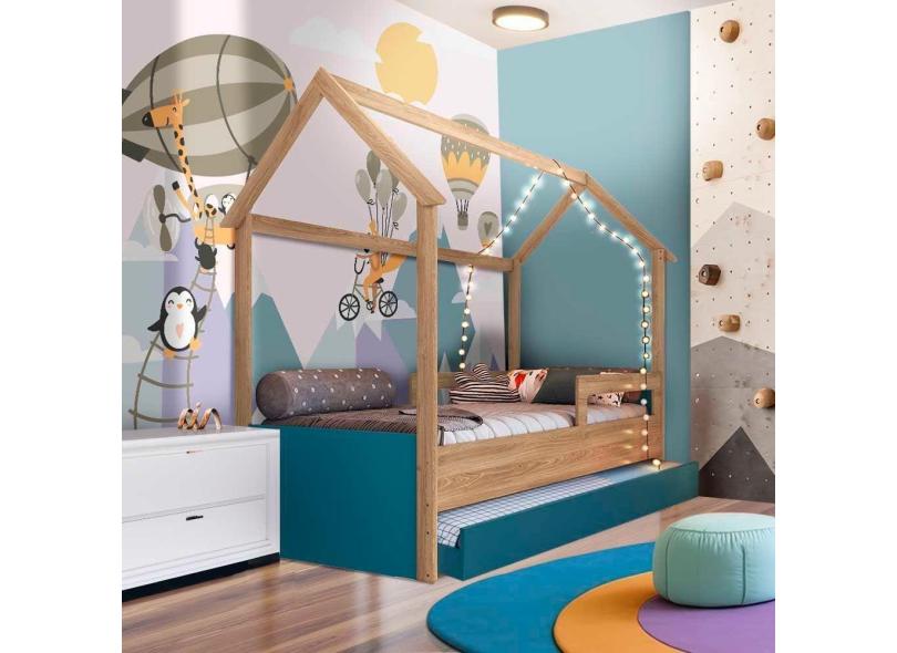 Cama Infantil Solteiro Com Auxiliar Azul JM
