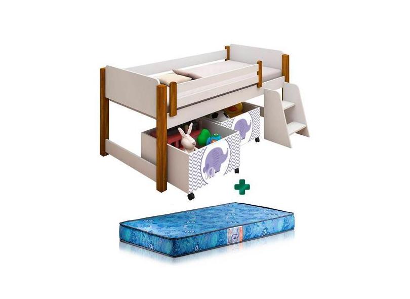 Cama Infantil Solteiro Com Baús Elefante Roxo Filhote Branco Amendoa N