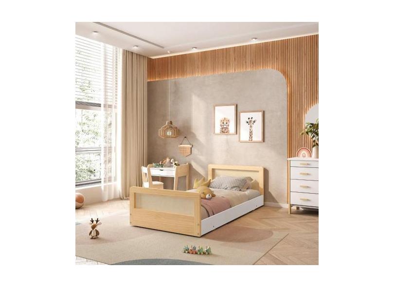Cama Infantil Solteiro Montessoriana Lift Em Madeira Maciça Com Rattan