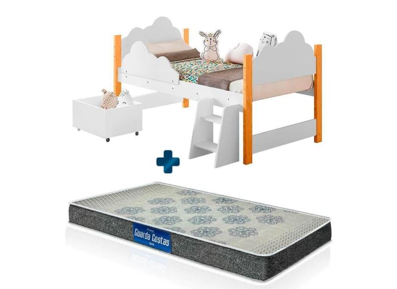 Cama Infantil Solteiro Nuvem Baú Branco Maia Colchão Probel
