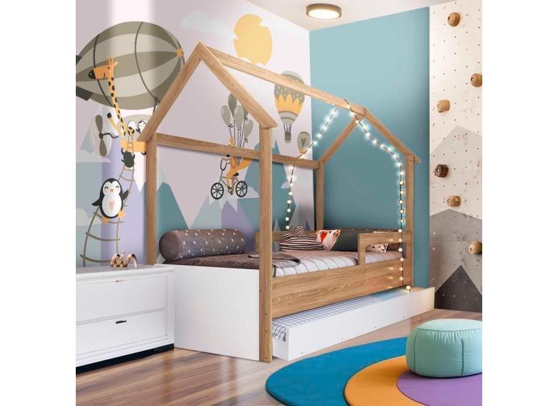 Cama Infantojuvenil Solteiro Com 2 Colchões E Auxiliar Casinha Aveiro Oak Branco Carrossel Jm Mó