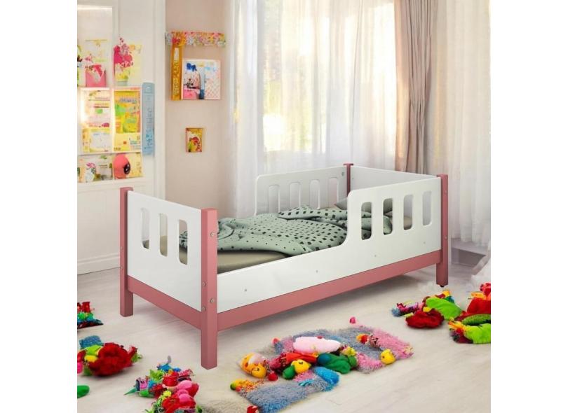 Cama Juvenil com Proteção Encanto Branca e Rosa