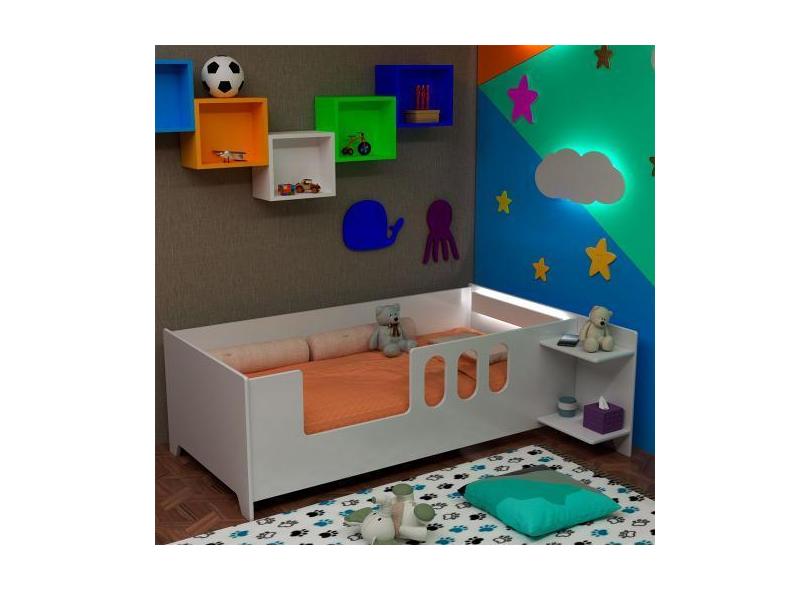 Cama Juvenil Livia Com Led Usb Prateleiras Divaloto Acompanha Mesa De