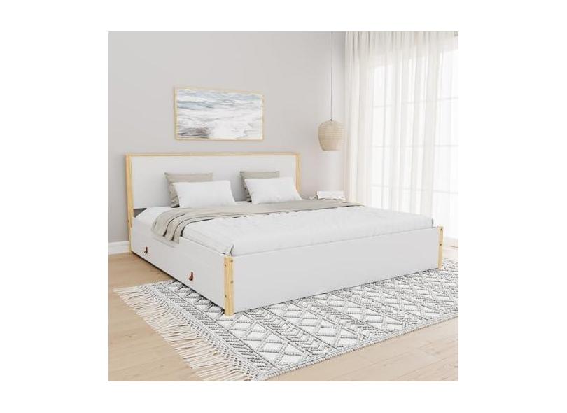 Cama King 4 Gavetas Íris Cabecasa Madeiramadeira Cinza/Natural