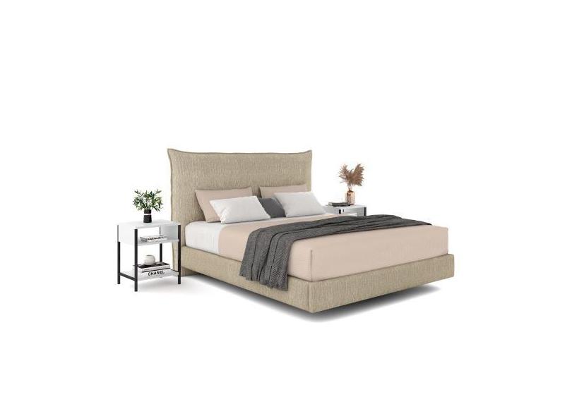 Cama King Flutuante 195cm Lyra E 2 Mesas De Cabeceira Plaza L03 Bege/B