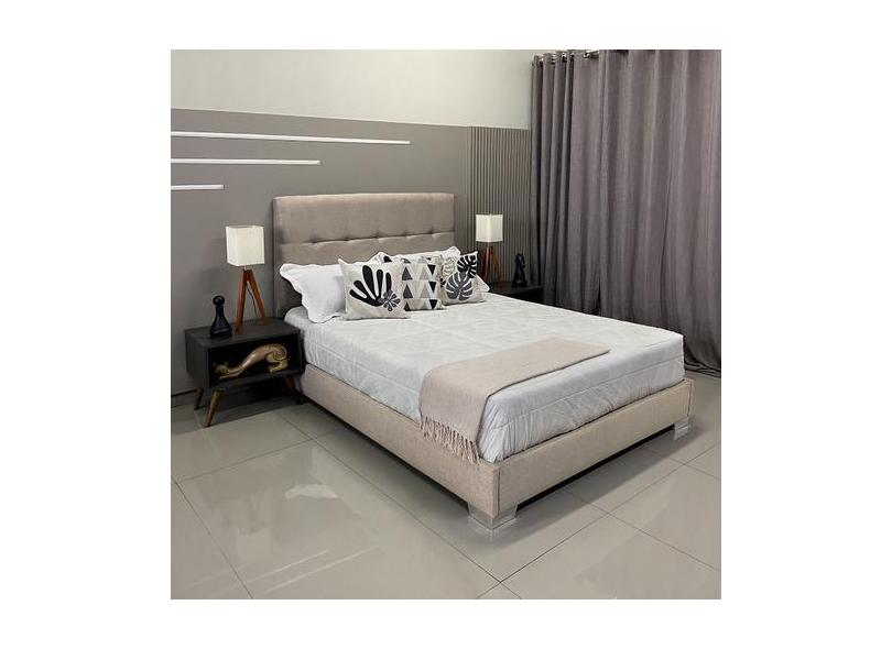 Cama Moderna Luxo Com Cabeceira Berlim Linho Bege Rbl Queen 1,60 X 2,0