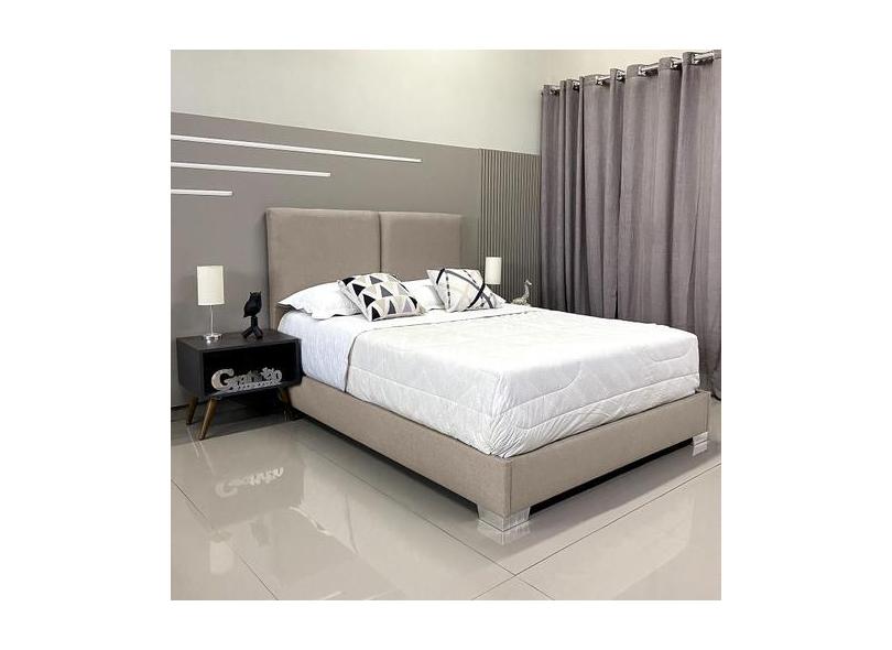 Cama Moderna Luxo Com Cabeceira Módena Linho Bege Rbl Casal 1,40 X 1,9