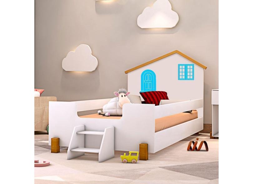 Cama Montessori Casinha Infantil Com Escadinha Branco Azul Belíssima Divaloto