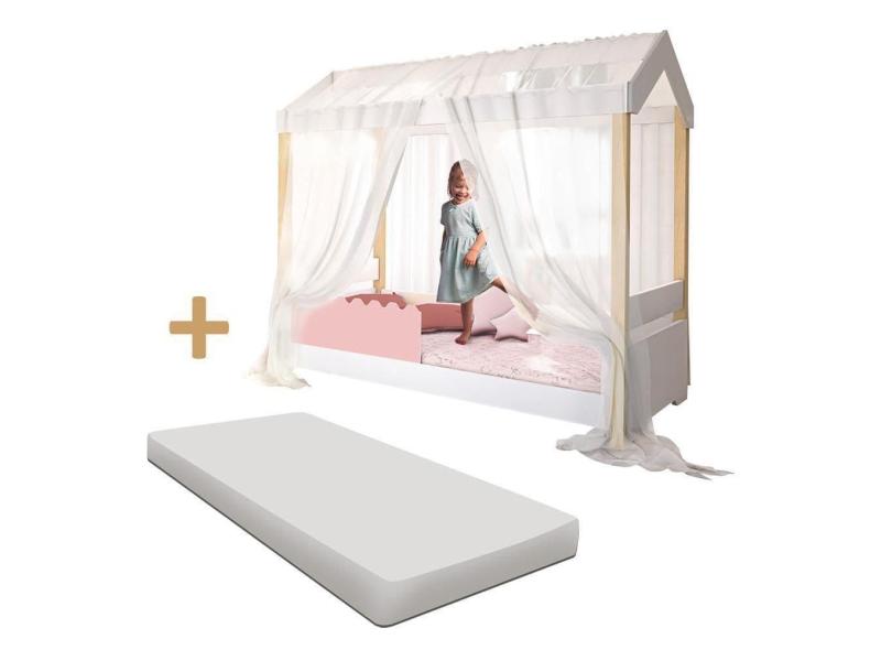 Cama Montessori Solteiro Rose Com Colchão E Voal Branco Jhulia Divaloto