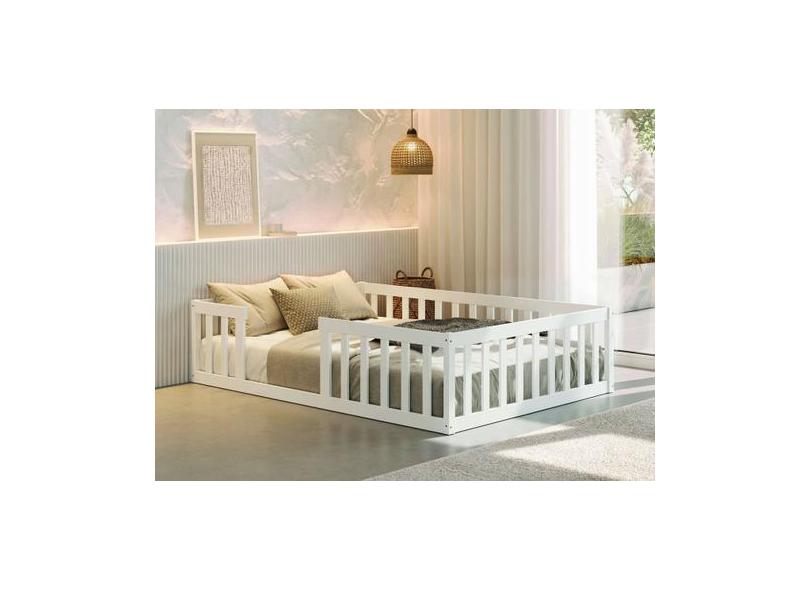 Cama Montessoriana Casal Nemargi Madeira Maciça Com Grade Branco
