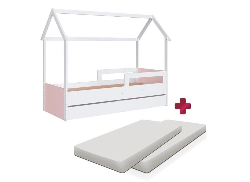 Cama Montessoriana com Colchão Solteiro e Gavetas - Branco Rosa