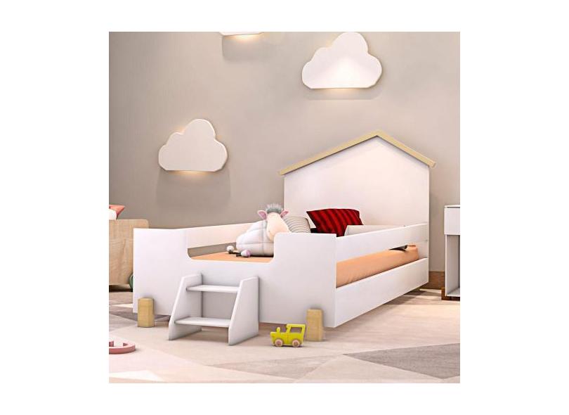 Cama Montessoriana Infantil Com Escadinha Solteiro Ayla - Branca E Nat