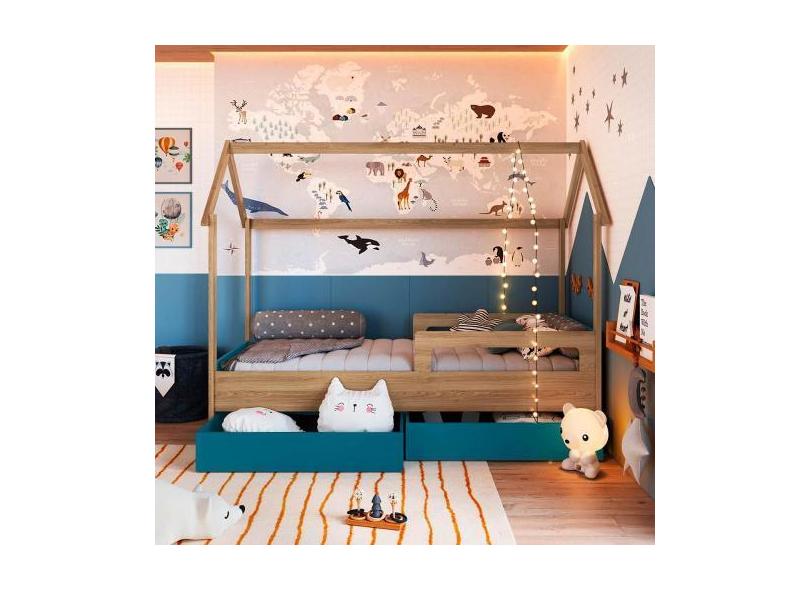 Cama Montessoriana Infantil Estilo Casinha 2 Gavetões 201cm - Completa