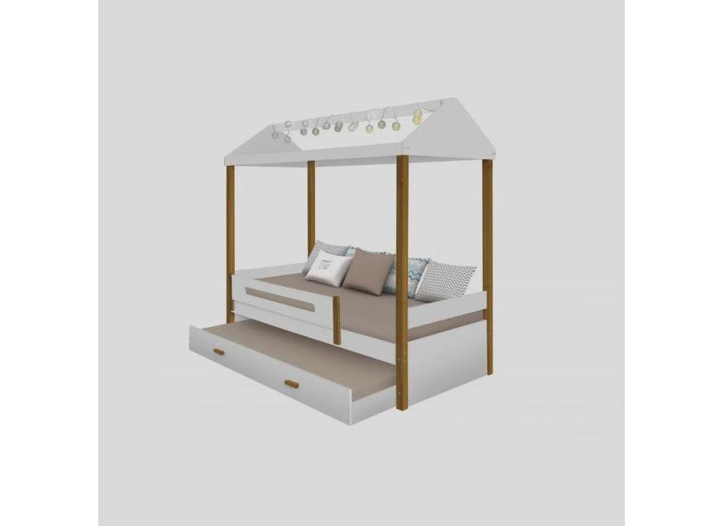 Cama Montessoriana Sara Solteiro com Cama Auxiliar e LED Branco/Mel