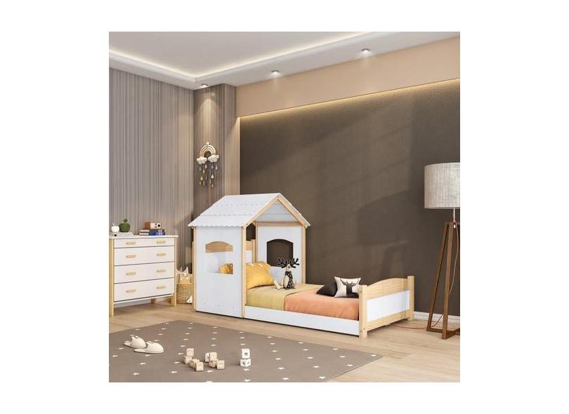 Cama Montessoriana Solteiro E Telhado Casinha Casatema