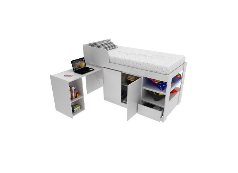 Cama Multifuncional Com Armário E Escrivaninha - Branco - Tecno Mobili