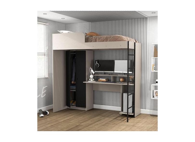 Cama Multifuncional Konza com Armário e Mesa Gamer - Cinza/Preto - Pol