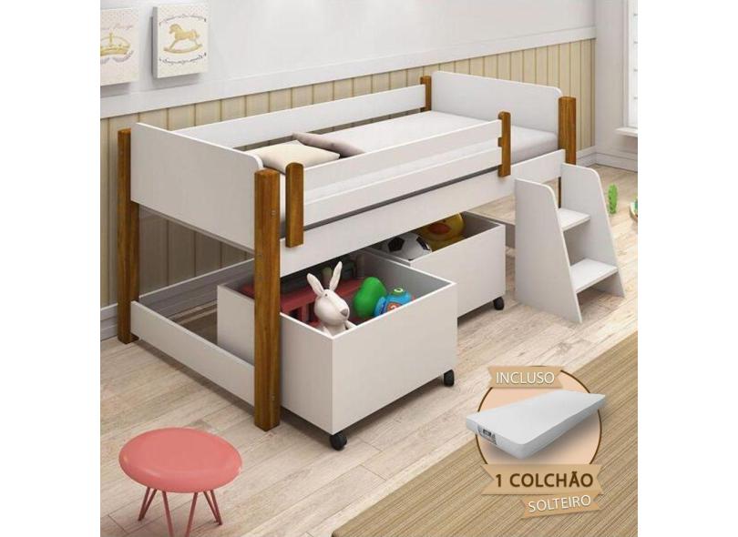 O menor preço encontrado no Brasil para Cama Naty Solteira Design Infantil Com Nichos E Colchão Divaloto - Branco/Amêndoa - Branco atualmente é R$ 1.159,00.