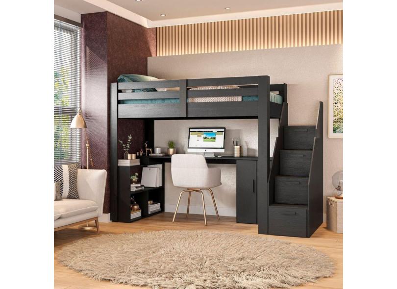 Cama Office Multifuncional Solteiro Adulto Star Plus Casatema Preto Perfect Touch