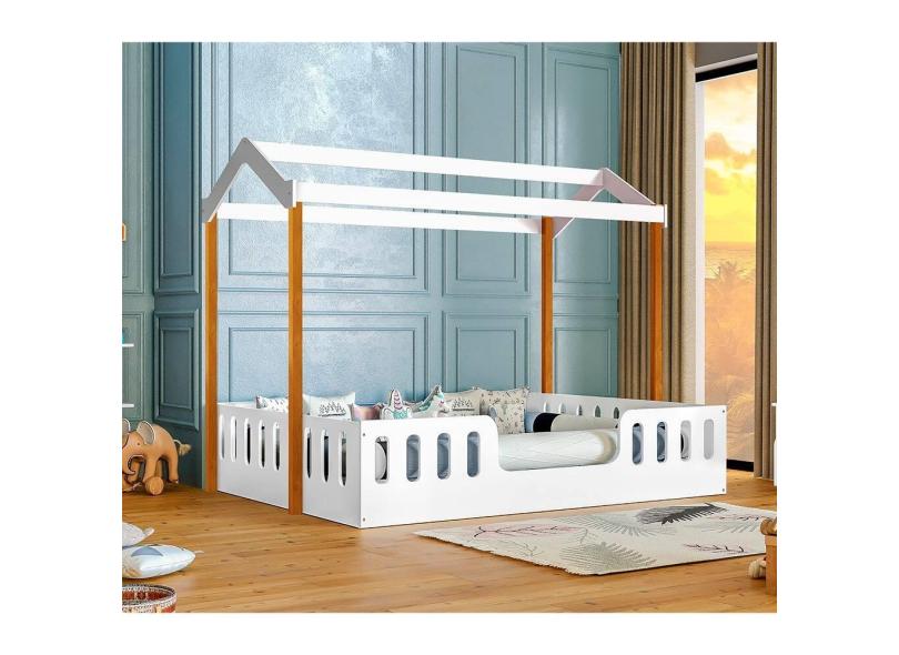 Cama Para Criança Ágatha Casal Infantil Casinha Montessoriana - Branca/Castanho Claro