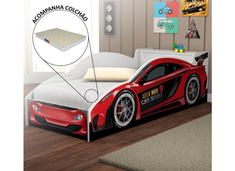 Cama Quarto Carro Solteiro Baú C/ Colchao Grade De Proteção Vermelho