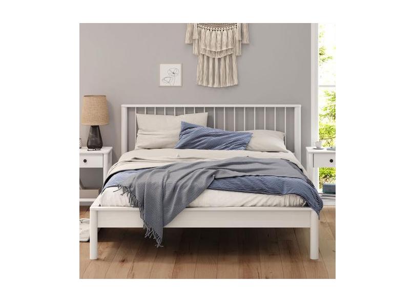 Cama Queen Casal de Madeira Maciça Moderna Apoana Branco - IDIMEX