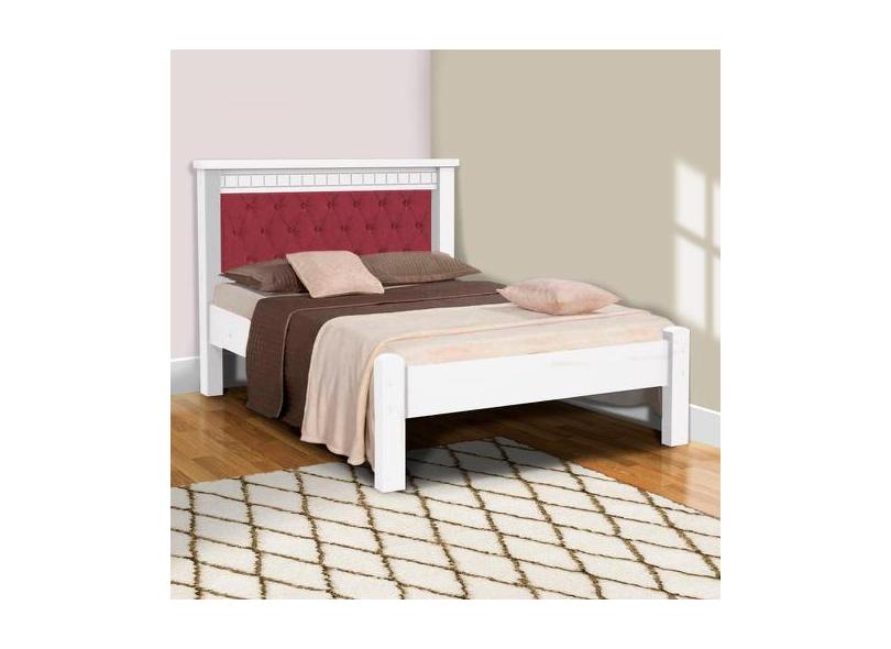 Cama Queen Size Em Mdf Reforçada Branco Com Capitonê Vinho Mega Fênix