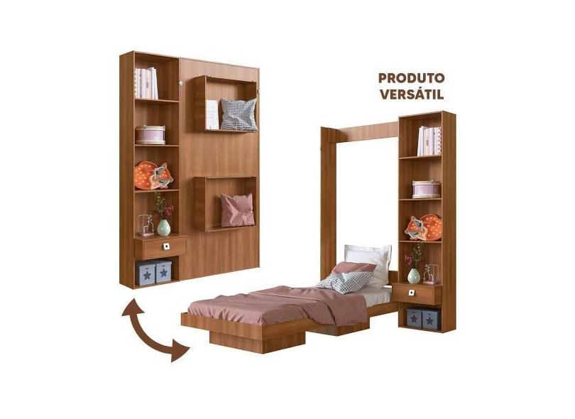 Cama Retrátil Embutida Solteiro Com Estante Nogal Galas Shop Jm