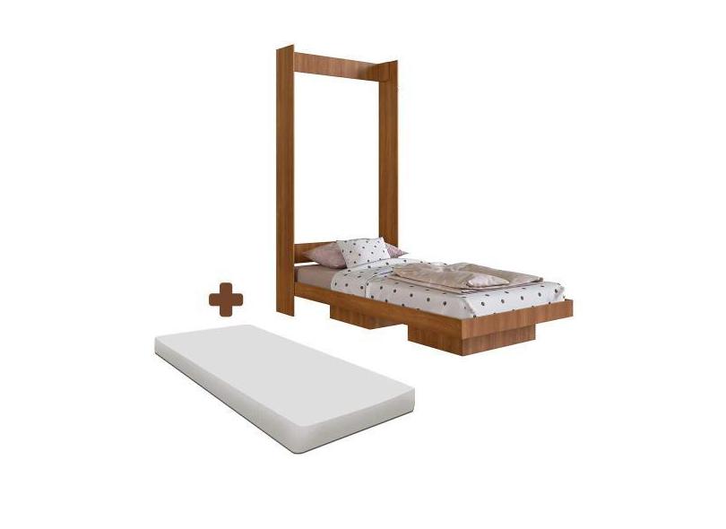 Cama Retrátil Embutida Solteiro Nogal Com Colchão Moison Shop Jm