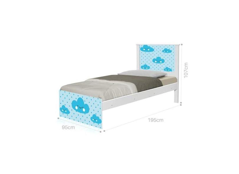 Cama Solteiro Adesivada Nuvem Menino com Colchão