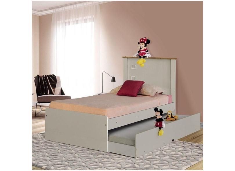 Cama Solteiro Barcelona Off White E Madeira Com Cama Auxiliar