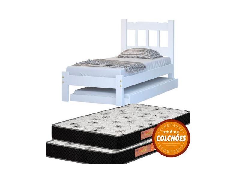 Cama Solteiro + Cama Auxiliar + 2 Colchões Cor Branco - Nemargi