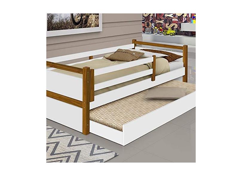 Cama Solteiro com Auxiliar e Grade de Proteção Bianca Branco/amêndoa