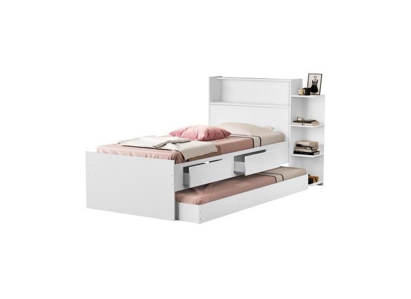 Cama Solteiro com Baú Auxiliar e 2 Gavetas Sara Branco - CasaH