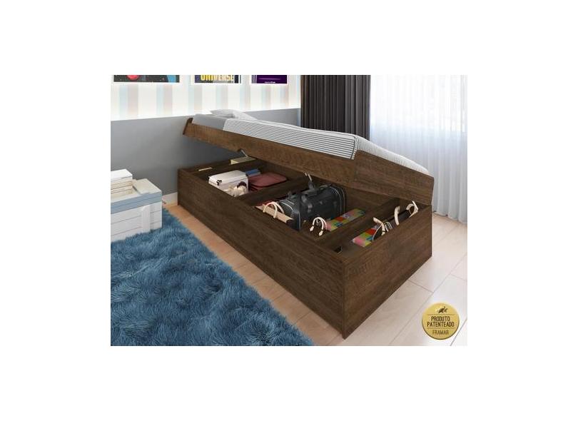 Cama Solteiro Com Bau Framar Camila Malbec Mdf/Mdp - Framar Moveis