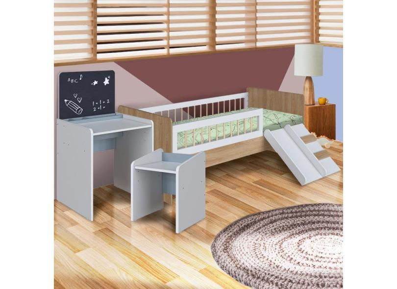 Cama Solteiro Com Colchão E Mesinha Infantil Aveiro Oak Branco Azul Cassian Shop JM