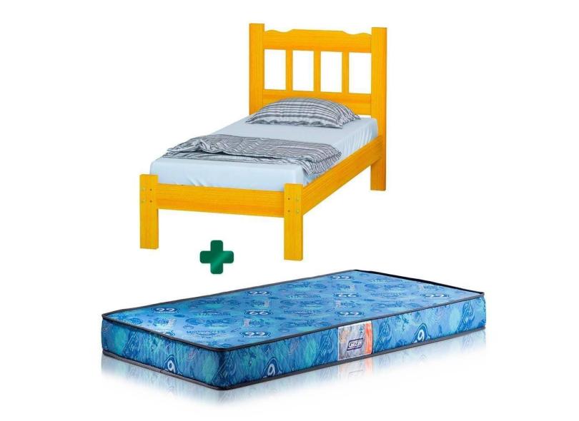Cama Solteiro De Madeira Cerejeira Pérola Nemargi Com Colchão Gazin