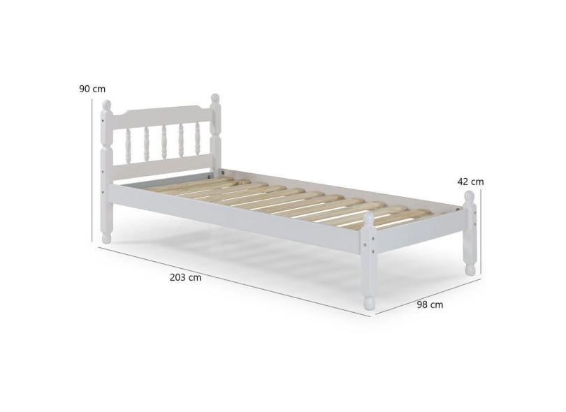 Cama Solteiro Em Madeira Maciça Mv Outlet Branco