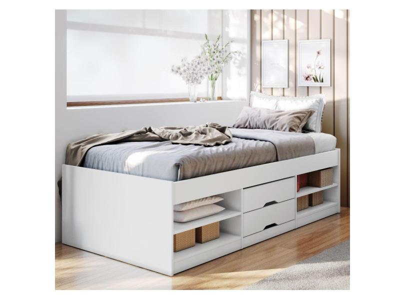 Cama Solteiro Kiara 4 Nichos e 2 Gavetas - Branco