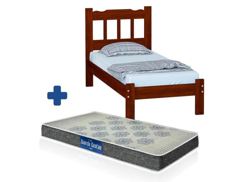 Cama Solteiro Madeira Maciça Castanho Perola C/ Colchão