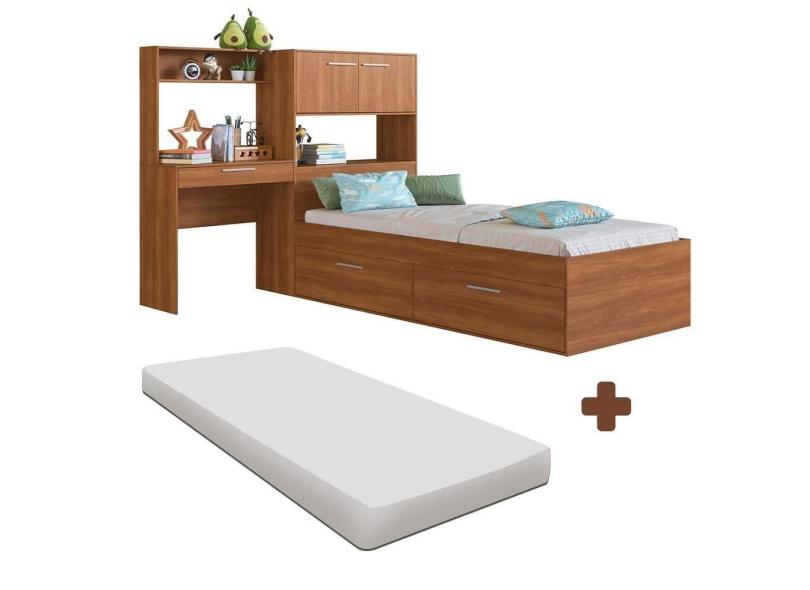 Cama Solteiro Multifuncional 4 Portas C Colchão Nogal Tokkio