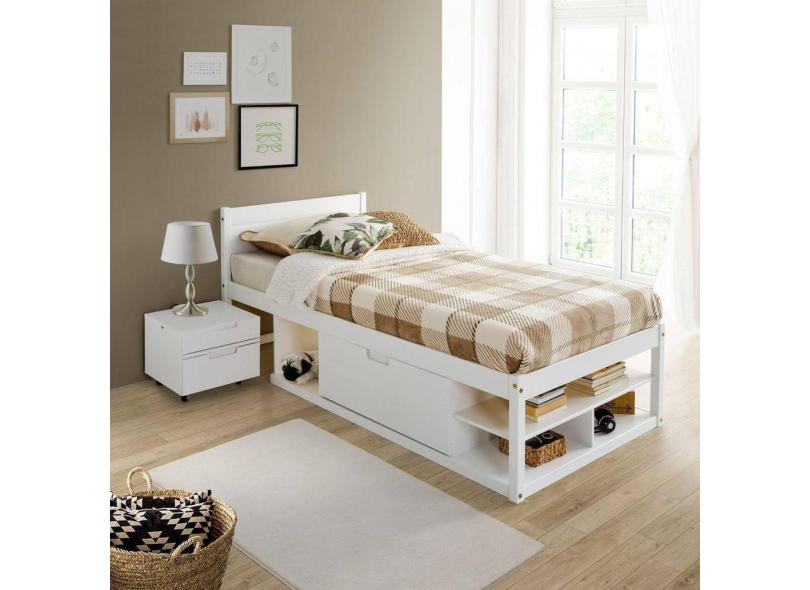 Cama Solteiro Multifuncional Madeira Maciça Irara Cabecasa Madeiramadeira Branco Lavado