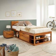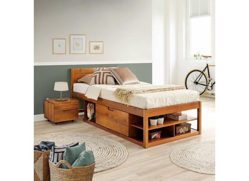 Cama Solteiro Multifuncional Madeira Maciça Irara Cabecasa Madeiramadeira Caramelo