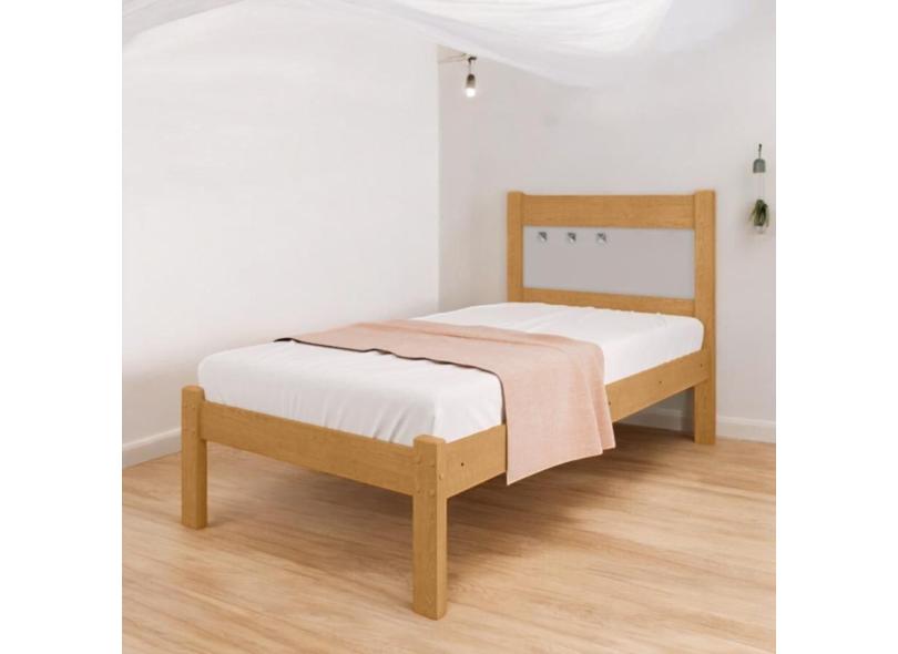 Cama Solteiro Paola Naturalle e Off White com Colchão