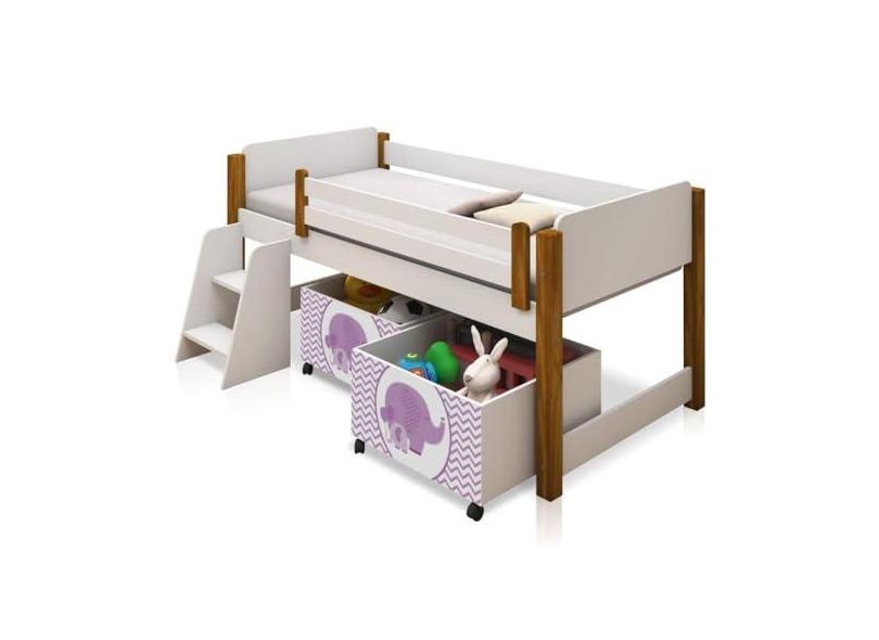 Cama Solteiro Paty Branco com Mel com Baú Adesivado Filhote Lilas