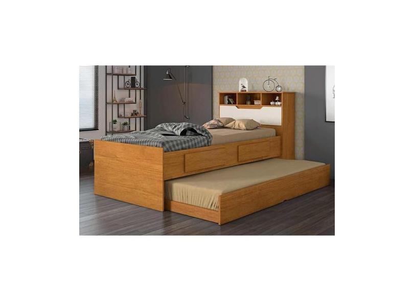 Cama Solteiro Ravena 2 Gavetas C/Auxiliar Cinamomo/Off White - Conquis