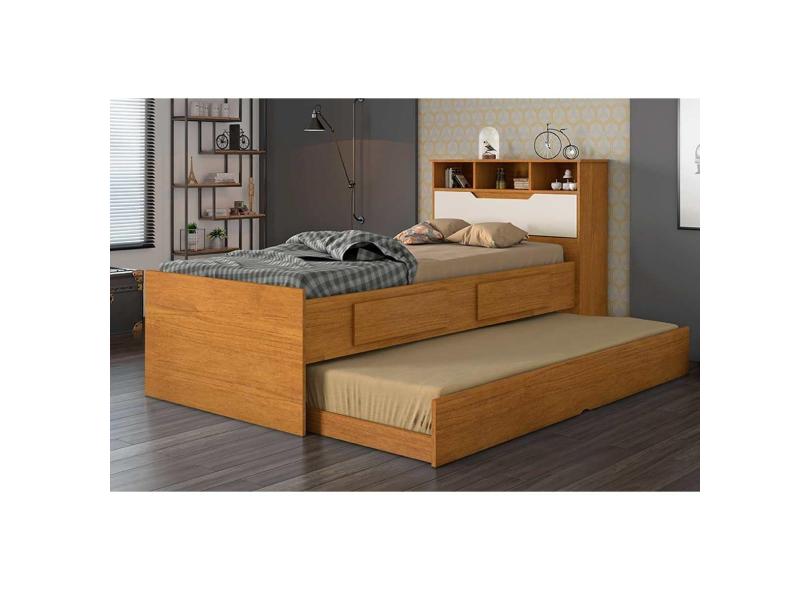 Cama Solteiro Ravena 2 Gavetas C/Auxiliar Cinamomo/Off White - Conquista