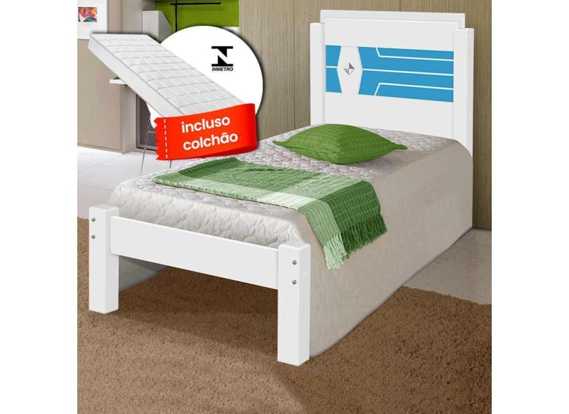 Cama Solteiro Reforçada Em mdf Com Colchão Livia Branco E Azul Carmolar